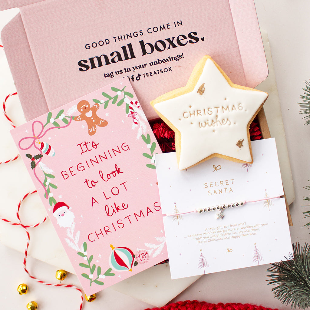 Our Mini Secret Santa TreatBox is the stress-free answer. Cute, festive, on-theme and delivered straight to their desk. No guesswork, no budget panic, no spending your lunch break wandering the aisles.
