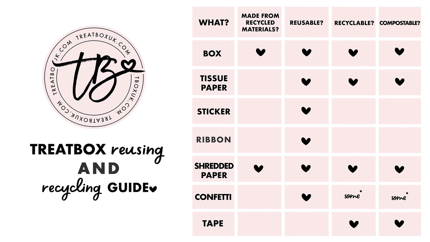 With that in mind, we wanted to let you know some of the ways we’re being more sustainable and how you can reuse and recycle your TreatBox. Plus, we’ve created a guide that shows you exactly which parts of your TreatBox are made from recycled materials and whether or not you can reuse, recycle or compost them.