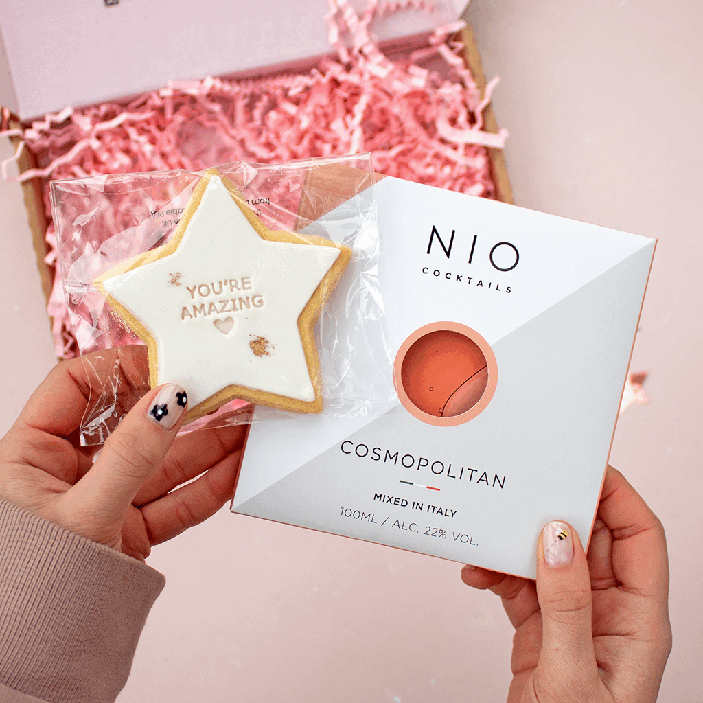 Introducing our Birthday Gin add-in! You can even add it as an additional item to our Ready To Go TreatBoxes; like this Birthday Wishes beauty. And if you’re looking for something a little smaller, but with the same kick, our Crumbs and Cocktails Mini Ready To Go TreatBox is always a safe bet. A cute motivational biscuit and a cocktail? That really is happy post!