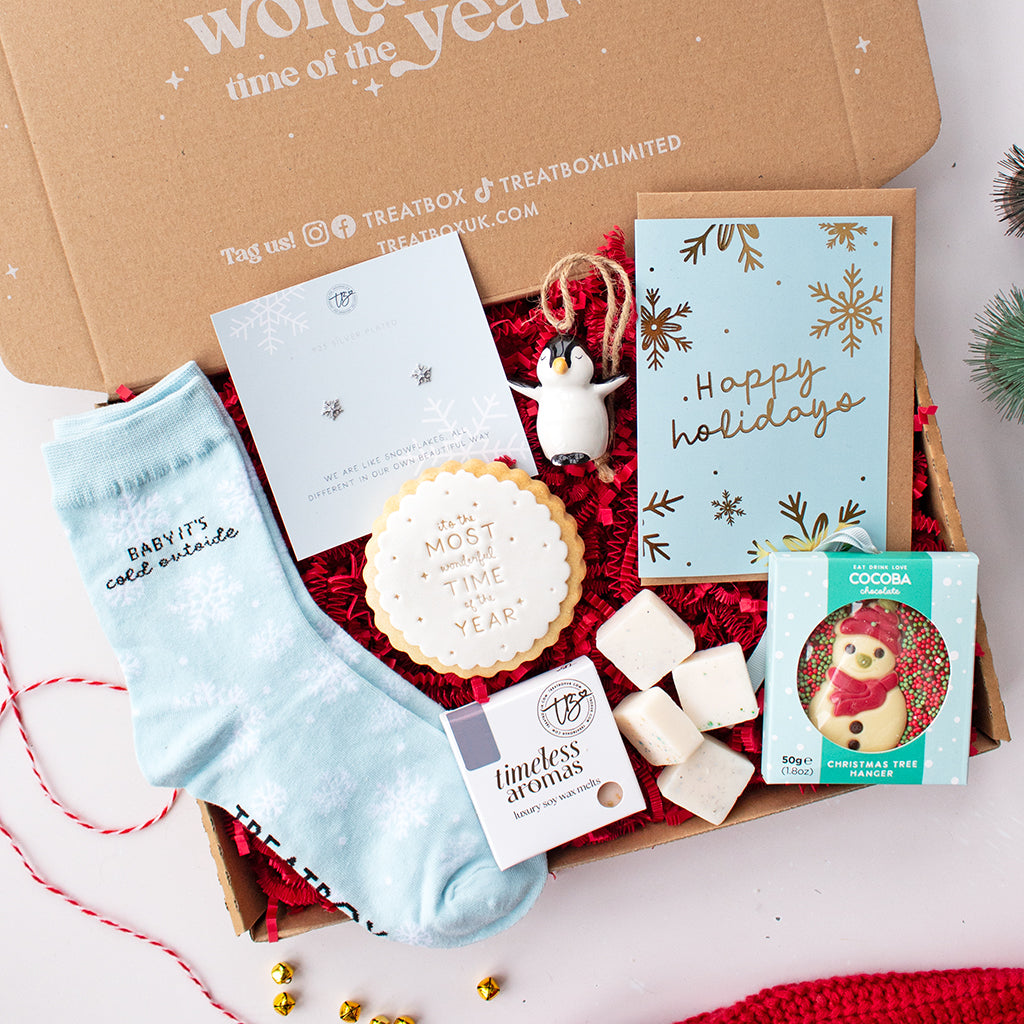 Our Baby It’s Cold Outside TreatBox has everything they’ll need to stay cosy when it’s frosty out, and neither of you even have to leave the house! From your ‘add to cart’ to their doorstep, North Pole elves have nothing on us.