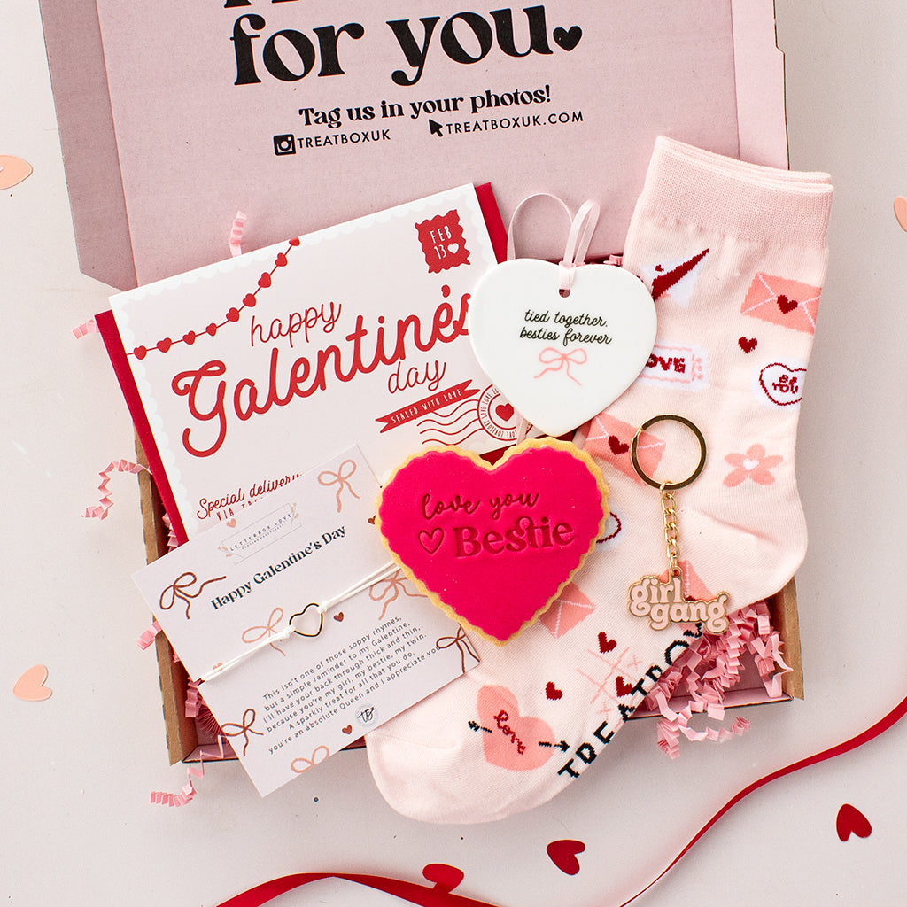 Secret Santa is for life, not just for Christmas! Why not arrange a secret gift exchange for the ladies in your life? Draw names, set a budget, and send each other a Galentine’s-Day-inspired gift. We have plenty of sweet, thoughtful, and personalised Treatboxes to choose from — or why not build your own?