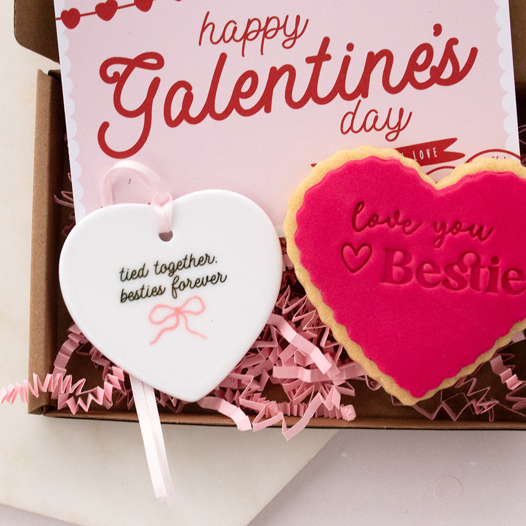 A personalised love note is a super cute way to let your person know you’re thinking of them. So send some love, complete with a picture of you and your bestie together. A great addition to any fridge or pinboard! Our Personalised Mini Galentine’s TreatBox is just what you need to make this happen.