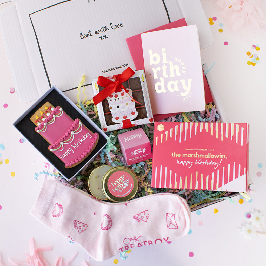 At TreatBox, we’re always creating and evolving! This means our box designs may change from time to time. While our images always reflect our most up-to-date boxes, some variations may occur based on stock availability. All our boxes are designed by TreatBox, fully branded, and colours may vary.