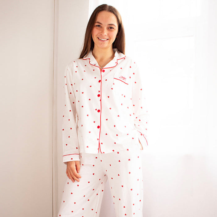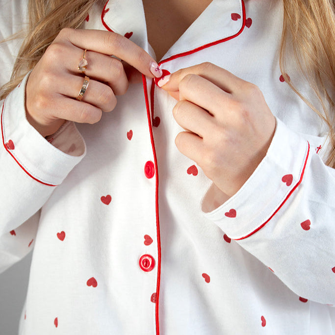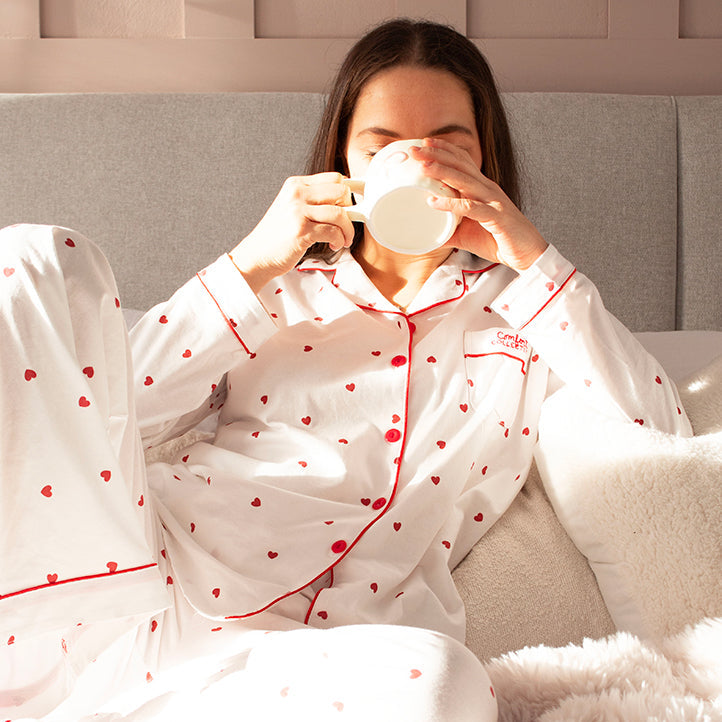 Comfort Collective White Heart Print Pyjama Set