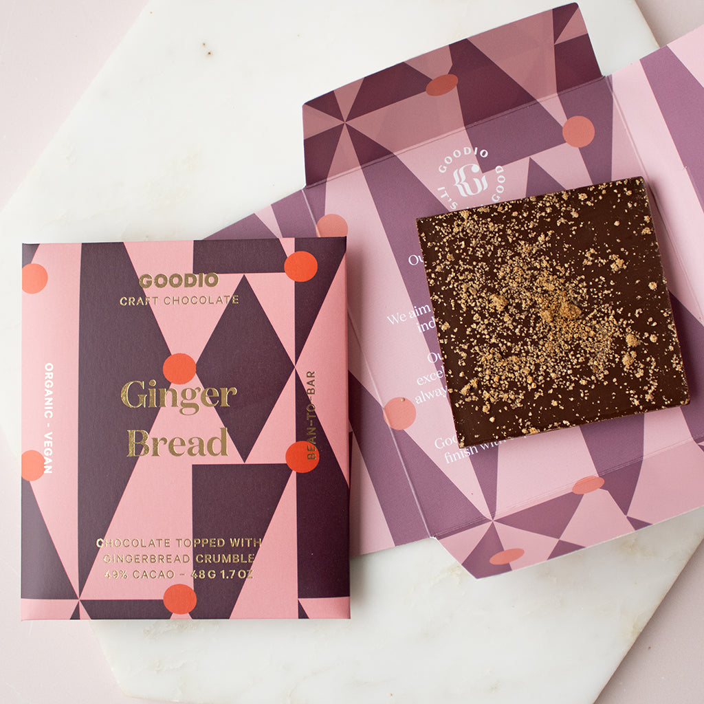 Sprinkled with the best parts of gingerbread on to this fine craft chocolate. Yummy Holidays! This product is 100% vegan & organic.