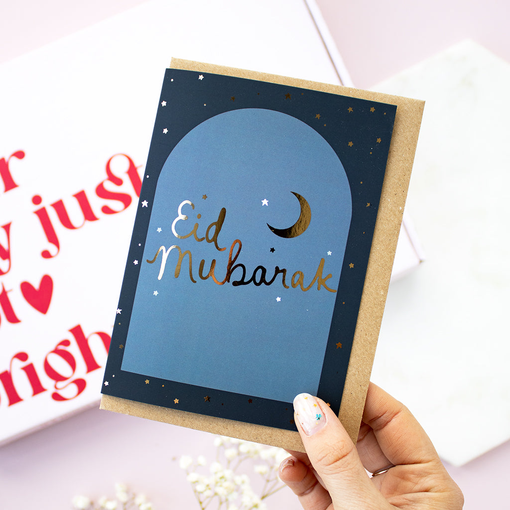Celebrate Eid with this elegant foil card, featuring a timeless ‘Eid Mubarak’ design. A lovely way to share warm wishes with loved ones on this special occasion.