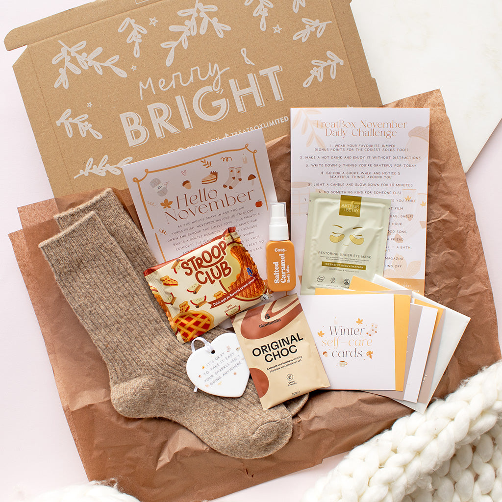 Each box includes a curated selection of lifestyle treats such as self-care, homeware, stationery, and little feel-good surprises.