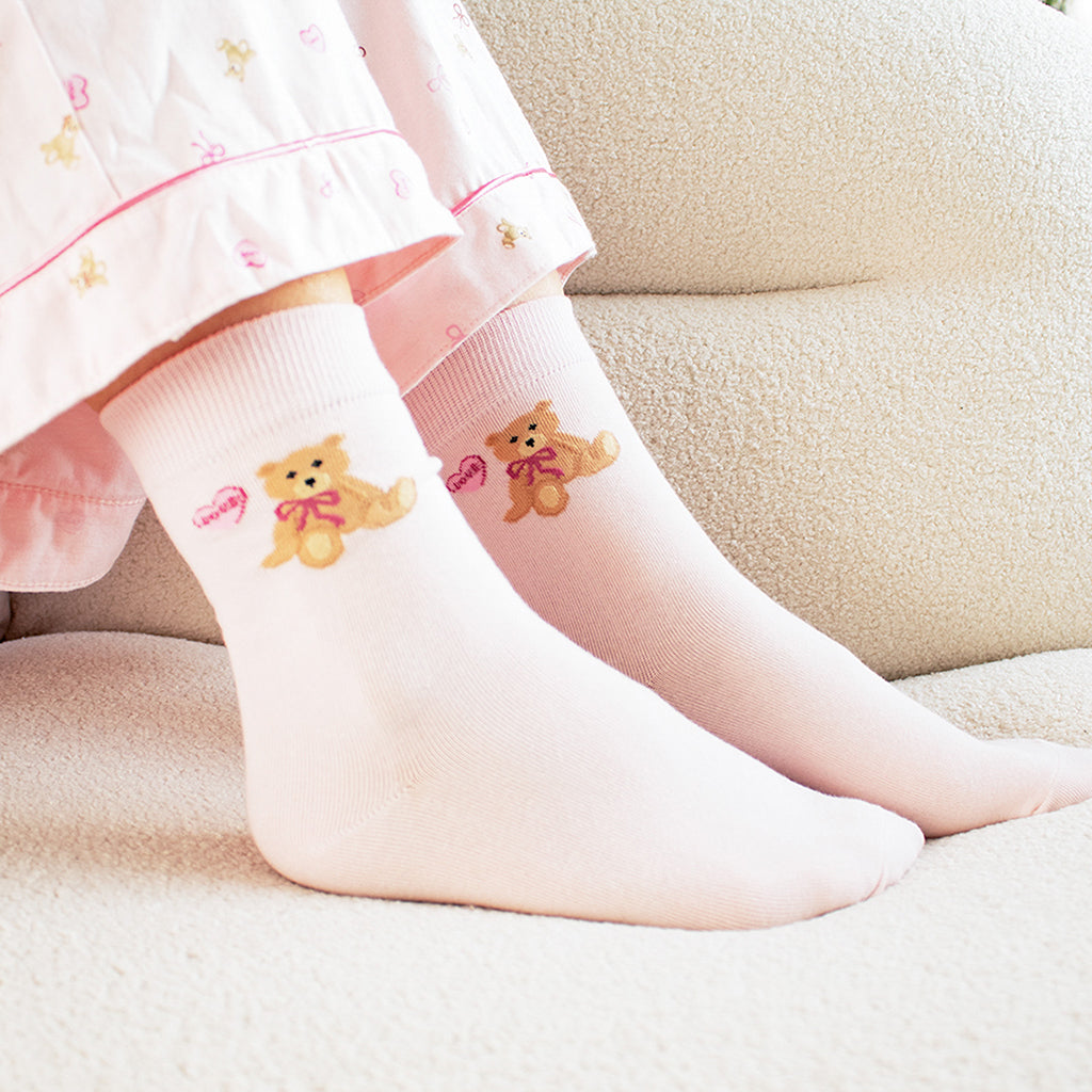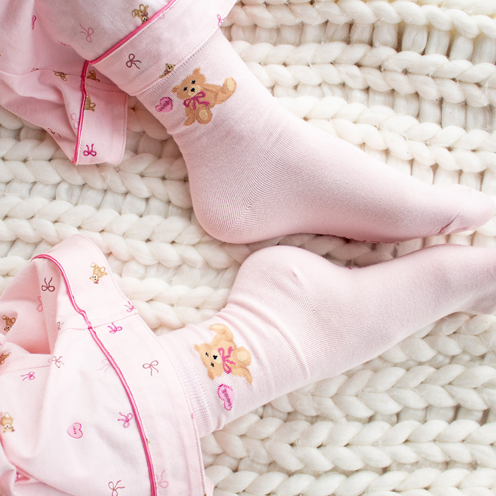 Wrap your feet in comfort with these pink socks featuring an adorable bear. Soft, snug, and playful, they’re the perfect cosy companion for any casual day or lounging around at home.
