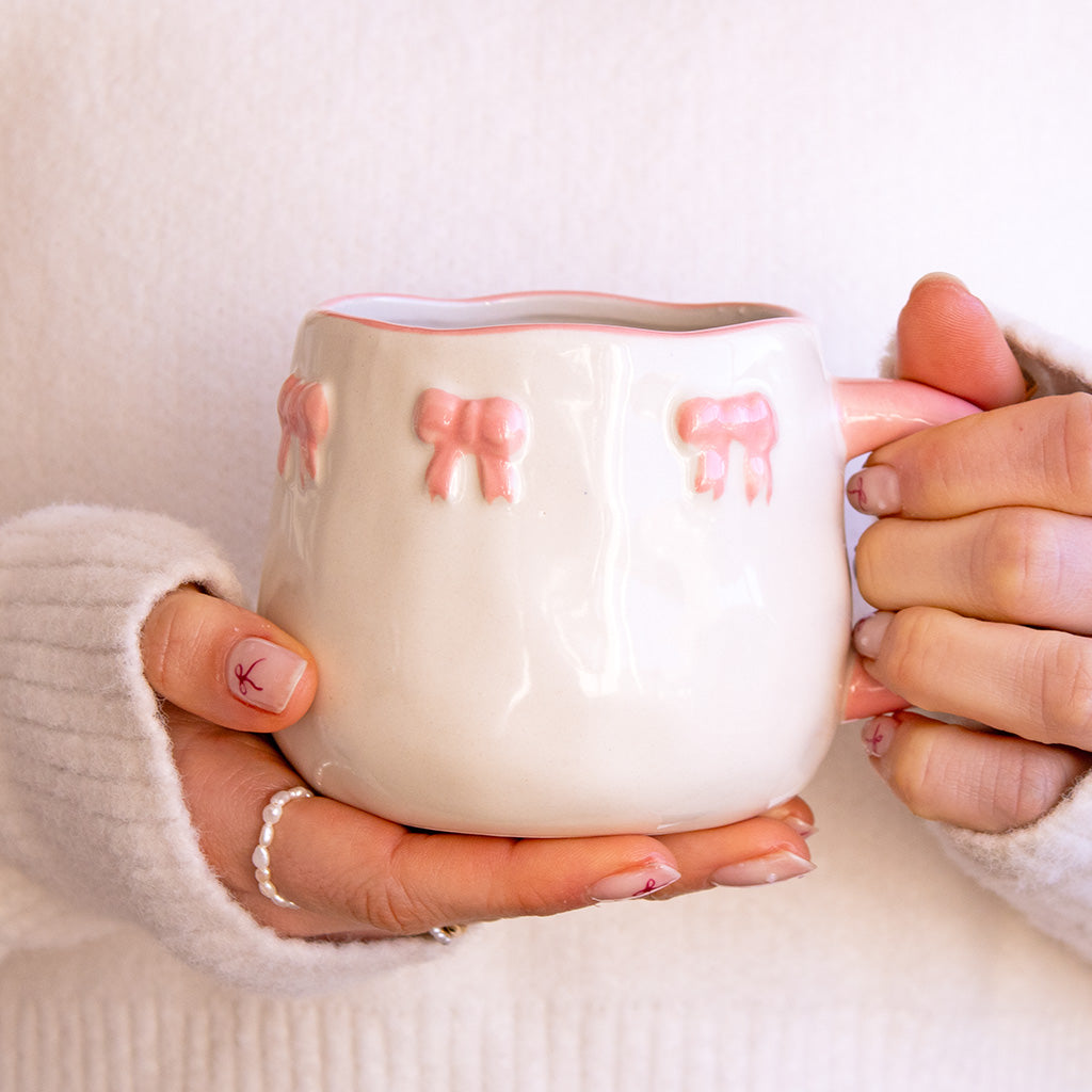 The Bow Mug features a delicate pink bow design on sturdy ceramic, creating a stylish and feminine vessel for your favourite hot drinks.
