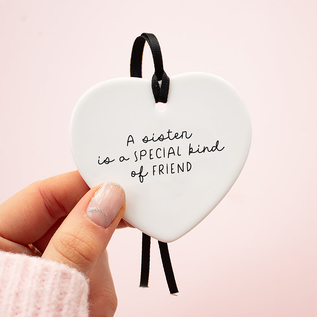 Show your sister you care with this beautiful ceramic keepsake! Featuring "A Sister is a Special Kind of Friend" message, this beautiful keepsake is sure to bring a smile to her face! Keepsake measures approx 7.5cm.