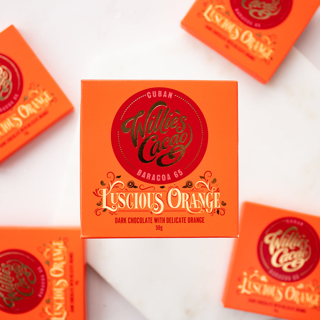 Simply delectable orange chocolate, made bean to bar with a cacao that tastes naturally of honey.