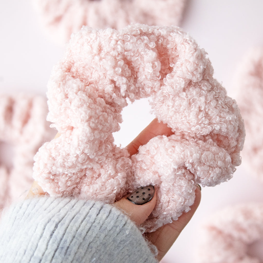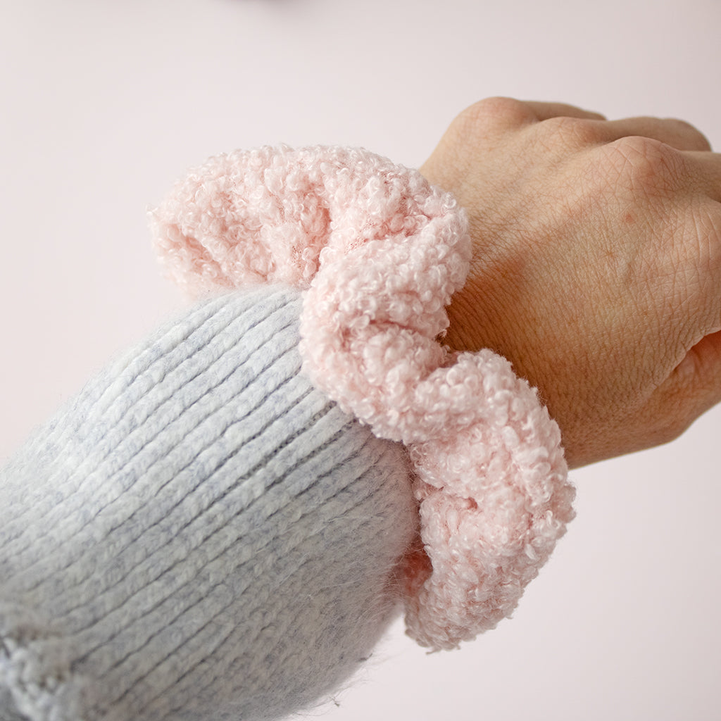 A soft, pink teddy scrunchie that adds a cosy touch to any hairstyle. Made with plush teddy fabric, it’s gentle on the hair, comfy to wear, and perfect for a cute, playful look.