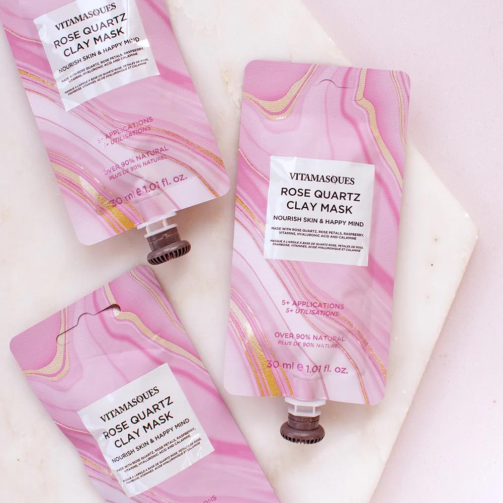 Indulge your skin in the luxurious nourishment of the Vitamasques Rose Quartz Clay Mask. Infused with the calming energy of rose quartz, this mask deeply hydrates, soothes, and revitalizes your complexion. Designed to promote self-care and relaxation, it helps to purify pores and restore a radiant glow. A must-have for a skincare routine, this clay mask makes an ideal pampering treat.