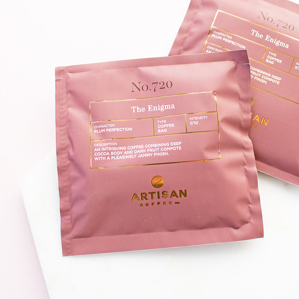 Complex in flavour, but easy to brew, The Enigma coffee bags offer the ultimate speciality coffee convenience, capturing notes of plum crumble, rich jammy tarts, and deep cocoa in a matter of minutes.