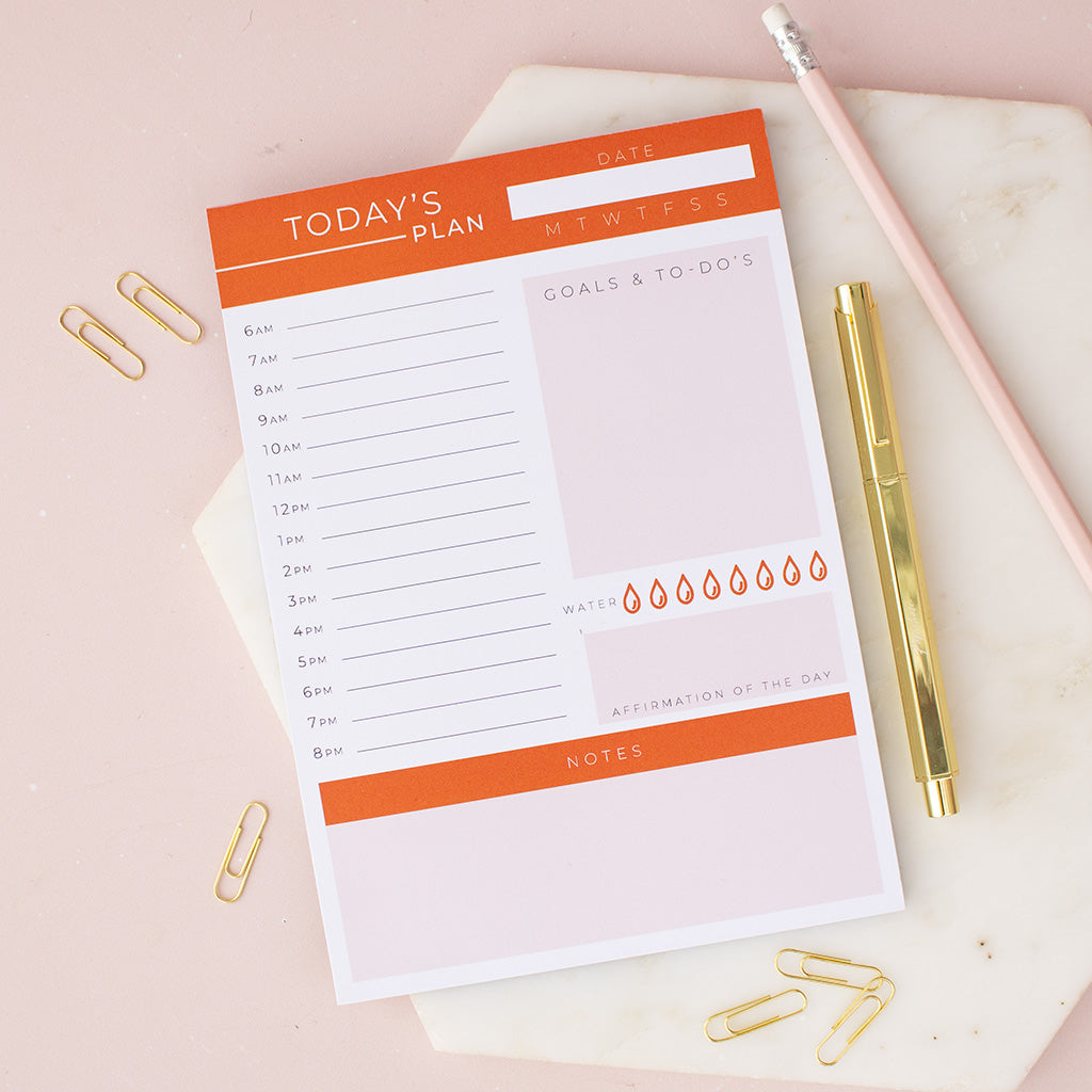 A stylish desk pad with the heading Today’s Plan, perfect for organising daily tasks, notes, and priorities.