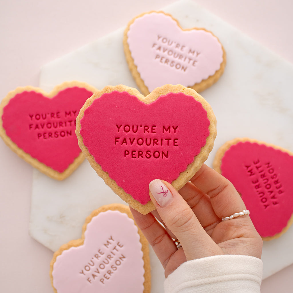 A heart-shaped iced biscuit decorated with the words “You’re My Favourite Person,” making a charming, thoughtful treat to show someone special how much they mean to you. Gardner's cookies are made using an egg and dairy-free* recipe, meaning vegetarians and vegans can enjoy them too.