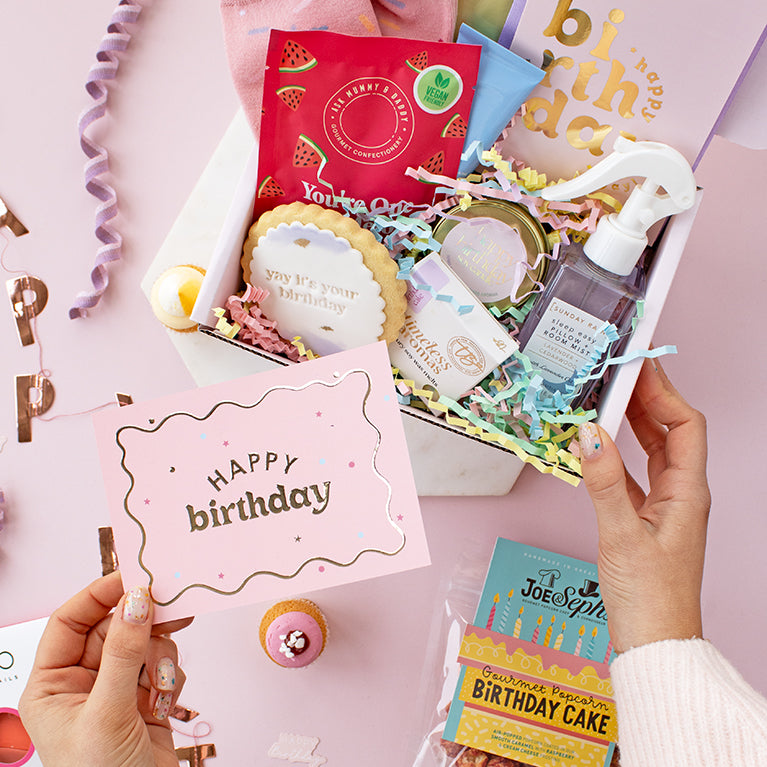 Get creative and personalise every detail, or choose a ready-to-go box, each one packed with love and made to brighten someone’s day.