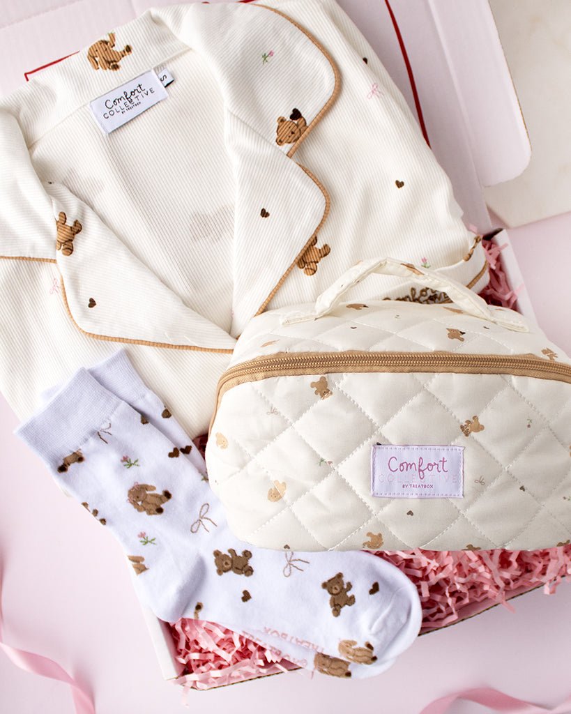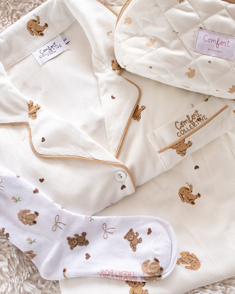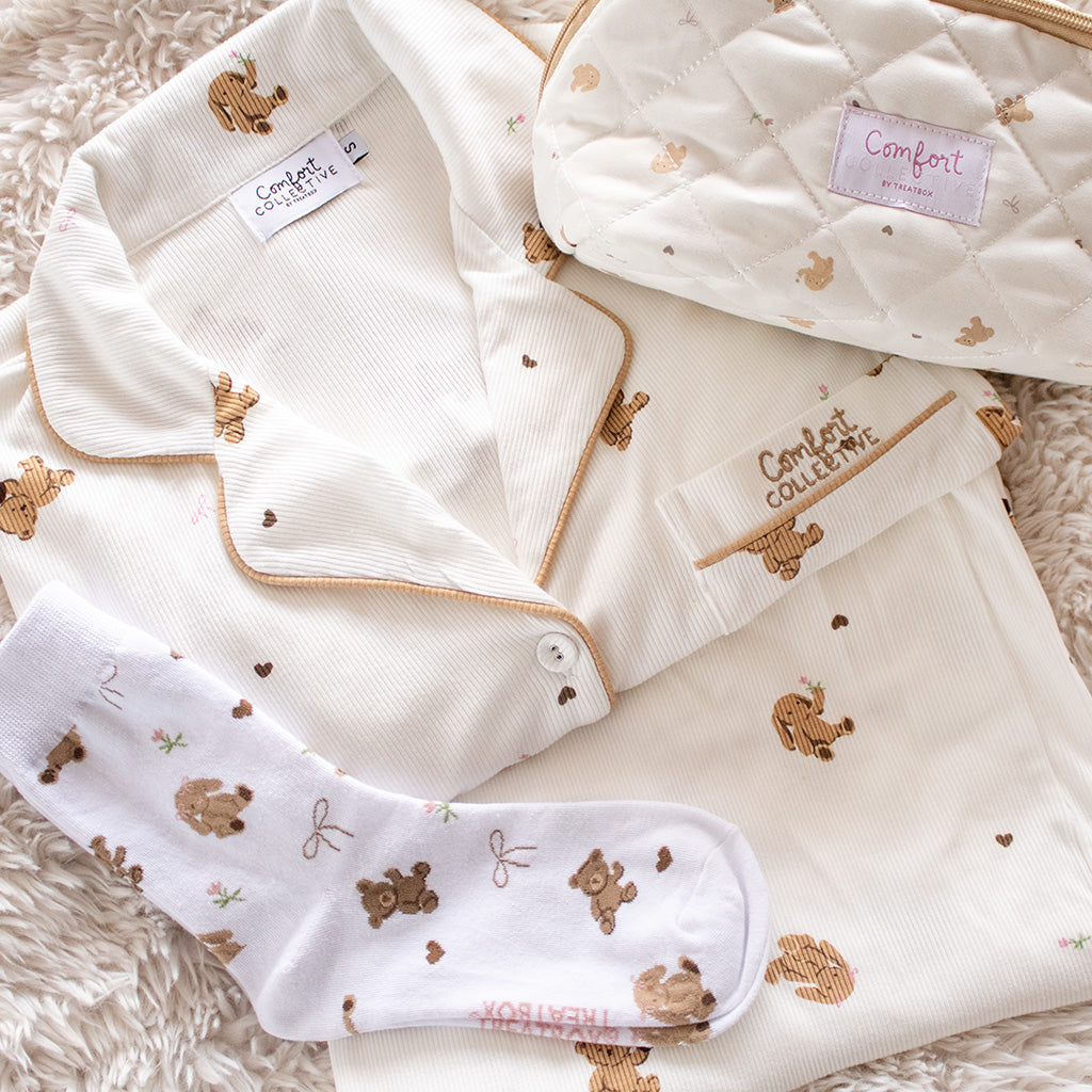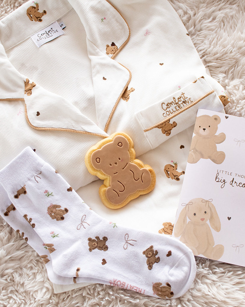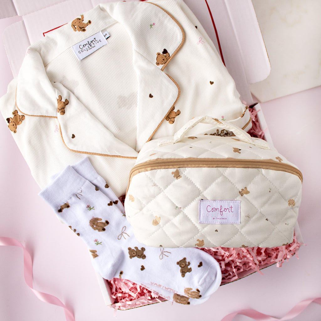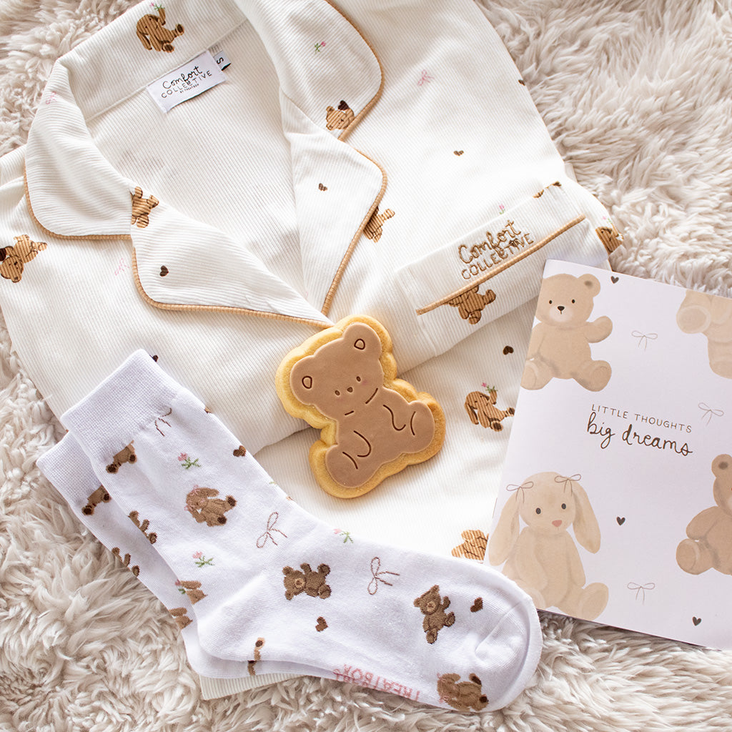 Experience ultimate comfort with our new 100% cotton pyjamas, perfect for lazy mornings, duvet days, and self care nights in. With inclusive sizing and luxurious fabrics, these soft and stylish pyjamas are your go-to for cosy self-care.