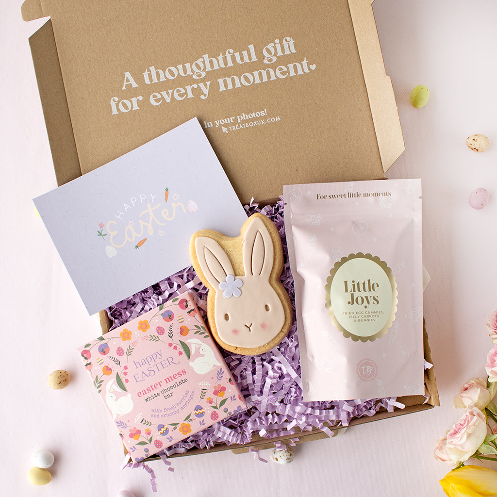 A simple Easter gift box with a mix of sweet treats is an easy way to send a little something this Easter.