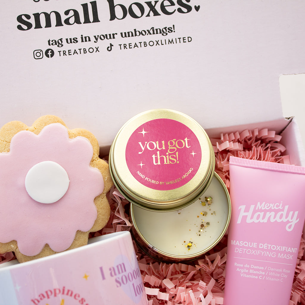 At TreatBox, we’re always creating and evolving! This means our box designs may change from time to time. While our images always reflect our most up-to-date boxes, some variations may occur based on stock availability. All our boxes are designed by TreatBox, fully branded, and colours may vary.