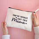 This high-quality pouch has been printed with the lovely message "You've totally got this mama" Complete with a heavy-duty black cotton lining, a sturdy zip and cotton wrist strap.
