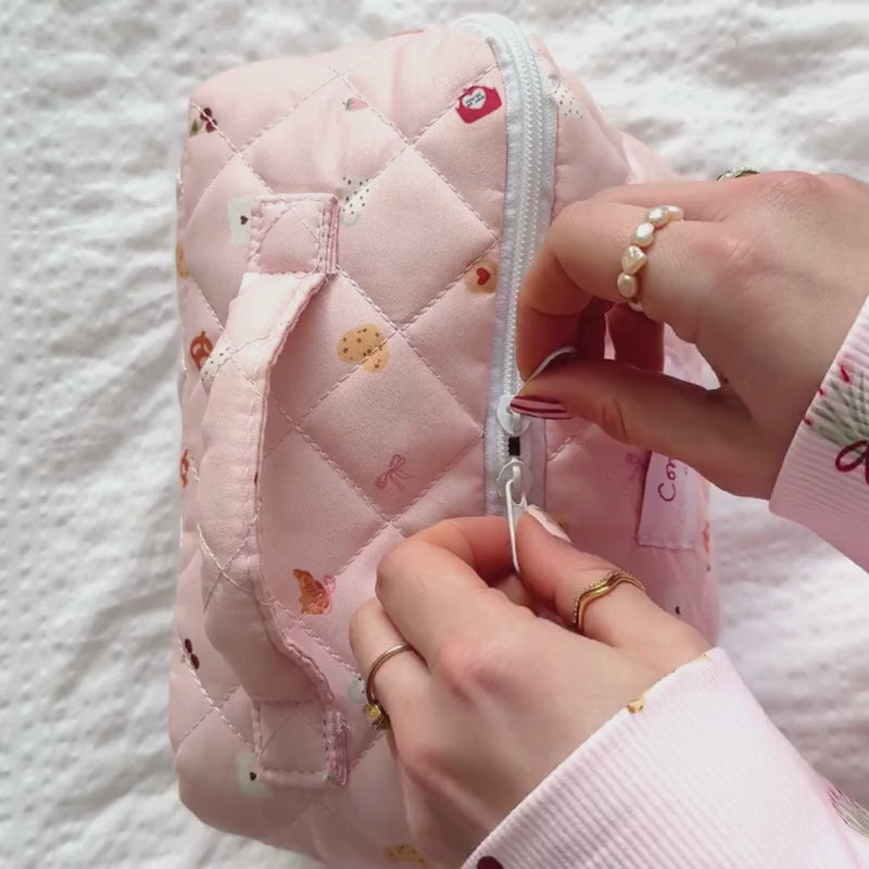 Designed by us, this practical makeup bag lays out flat, making it easy to see and access all your beauty essentials. Finished with our signature pastry print from our Breakfast Edit, it’s the perfect blend of style and everyday practicality.