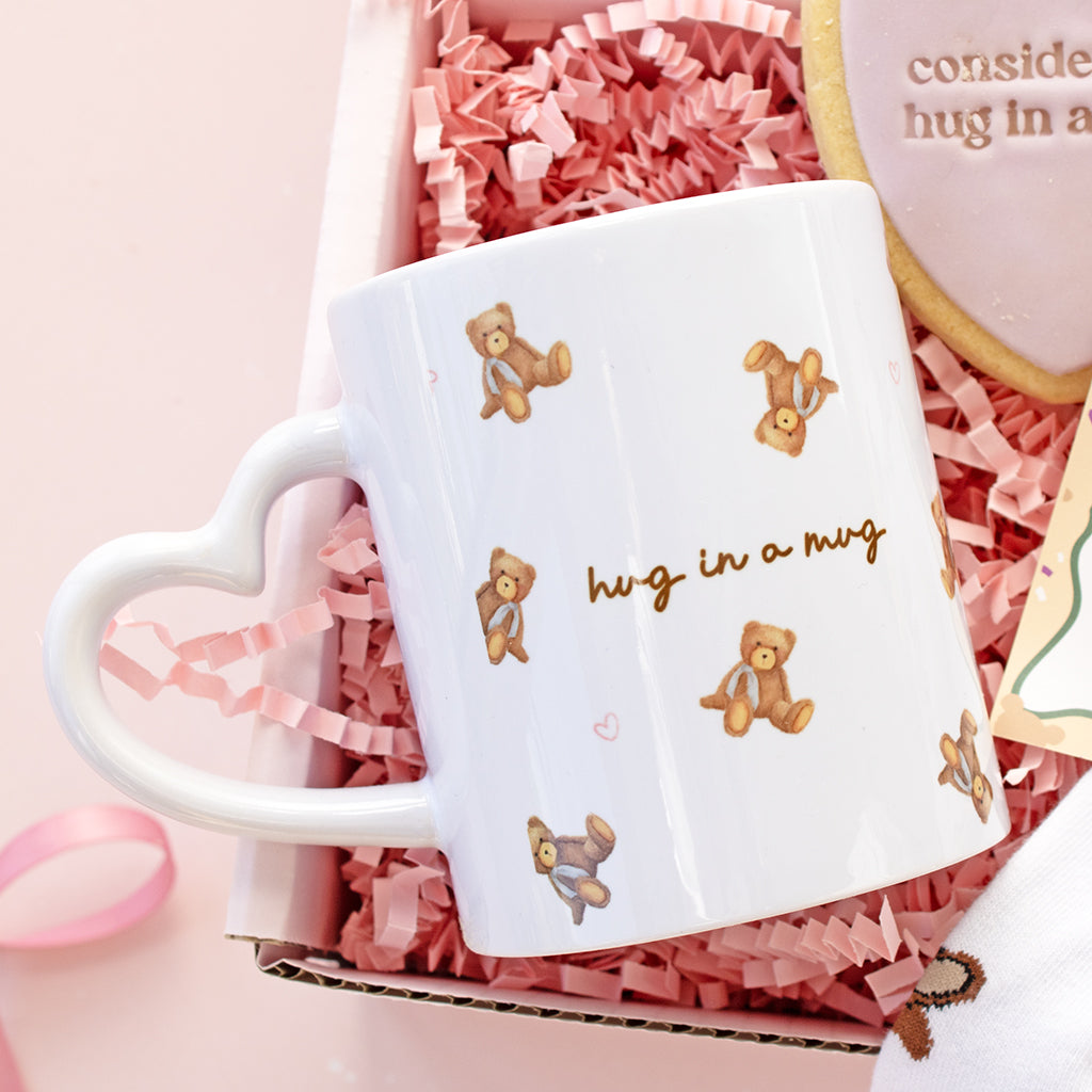 - "Hug in a mug" Heart Handle Bear Print Mug