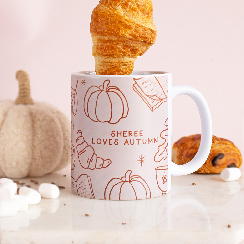 Savour your favourite warm drink in this personalised Autumn mug. Crafted from durable ceramic, it holds 11 oz and is both microwave and dishwasher safe — ideal for cosy seasonal moments.