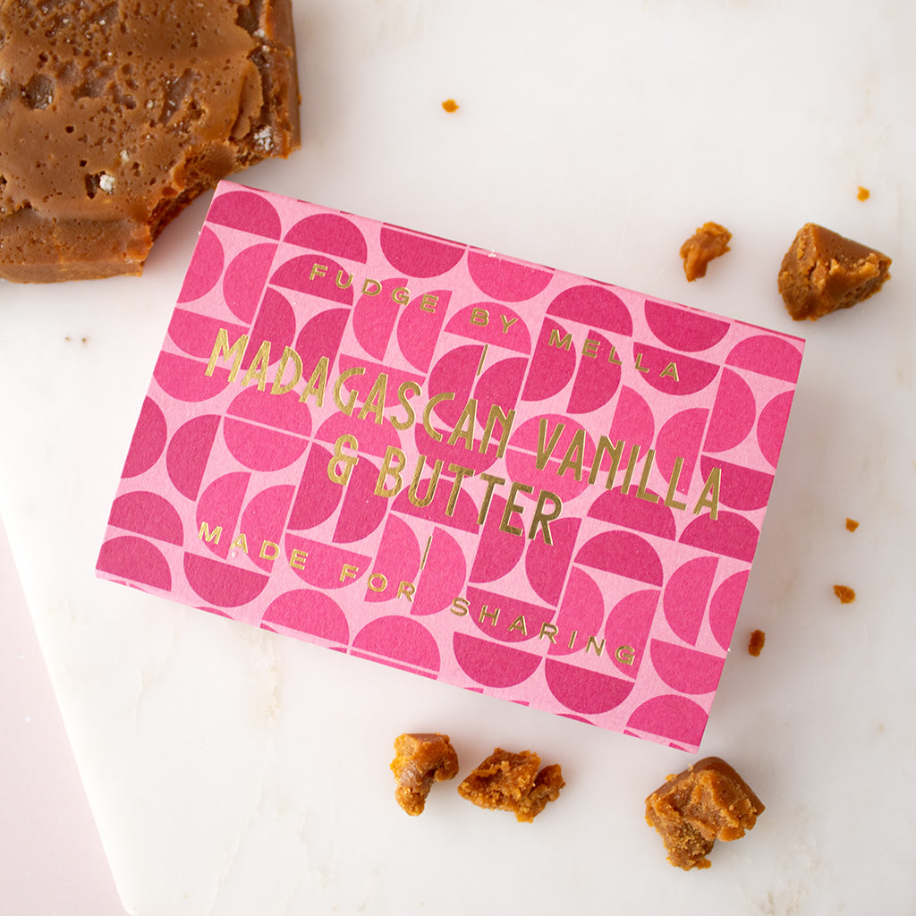 - Madagascan Vanilla & Butter Fudge Bar By Mella- Crumbly, buttery, with a hint of Madagascan vanilla