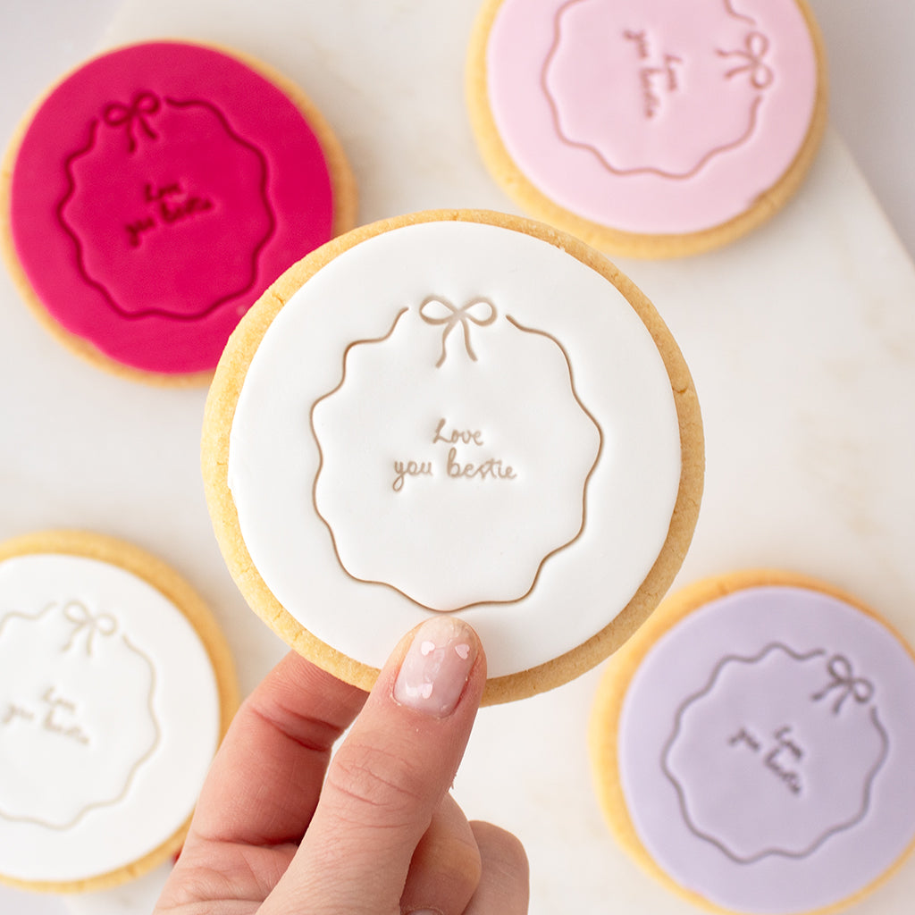 - Love You Bestie Vegan Iced Biscuit - a buttery shortbread biscuit