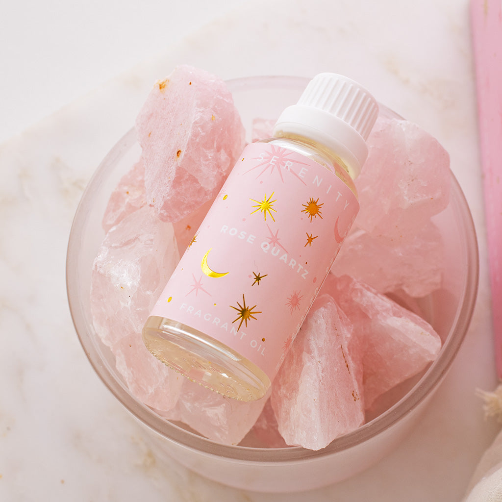 - Serenity Rose Quartz Crystal Potpourri & Oil- luxurious woody notes of sandalwood and cedar