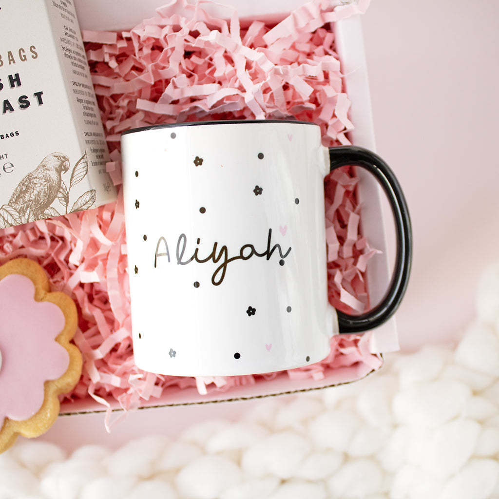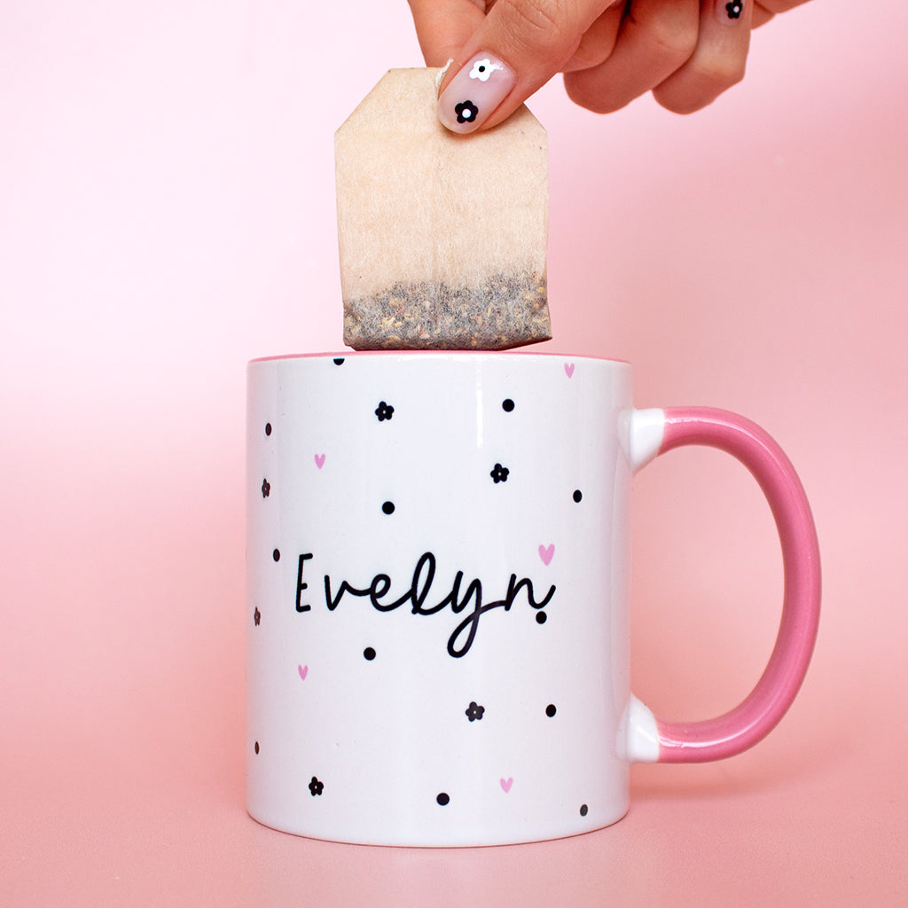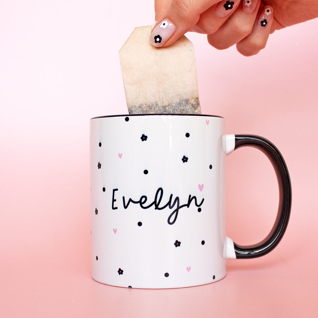 • Personalised Name Floral Polka Dot Mug - leave the name in the box provided
