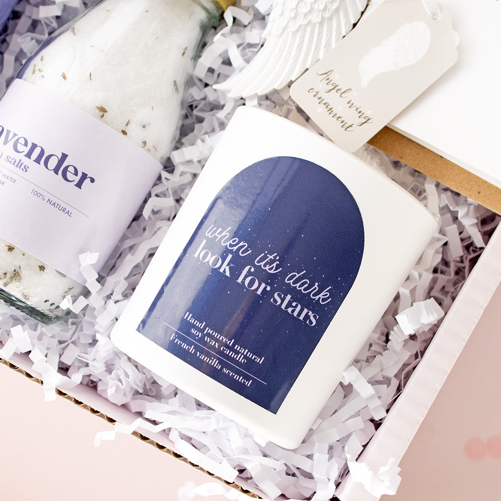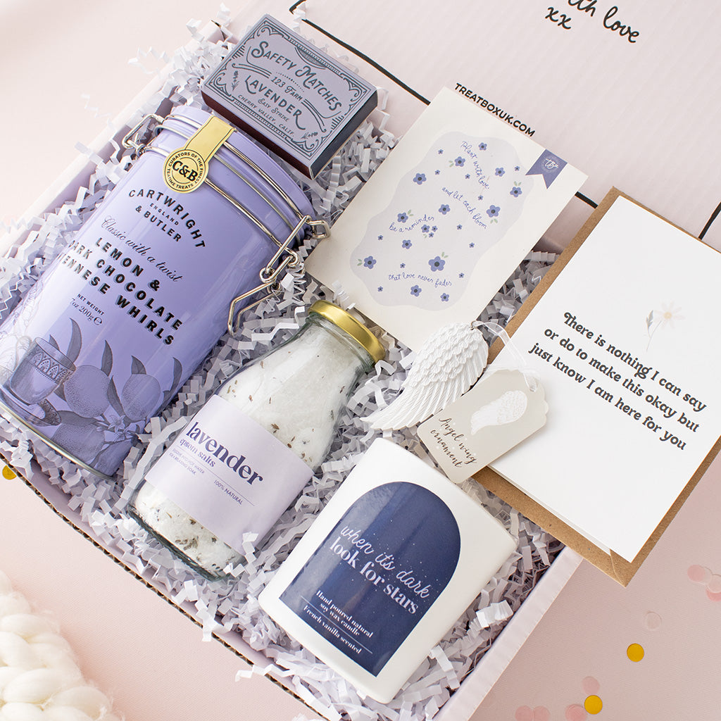 Our sympathy box is a lovely gesture to let your loved one or friend know they are in your thoughts during a difficult time. Carefully curated with thoughtful, comforting items, it provides a small yet meaningful way to offer support and bring some comfort when words aren’t enough. This box is designed to show you care and to let them know they are not alone.
