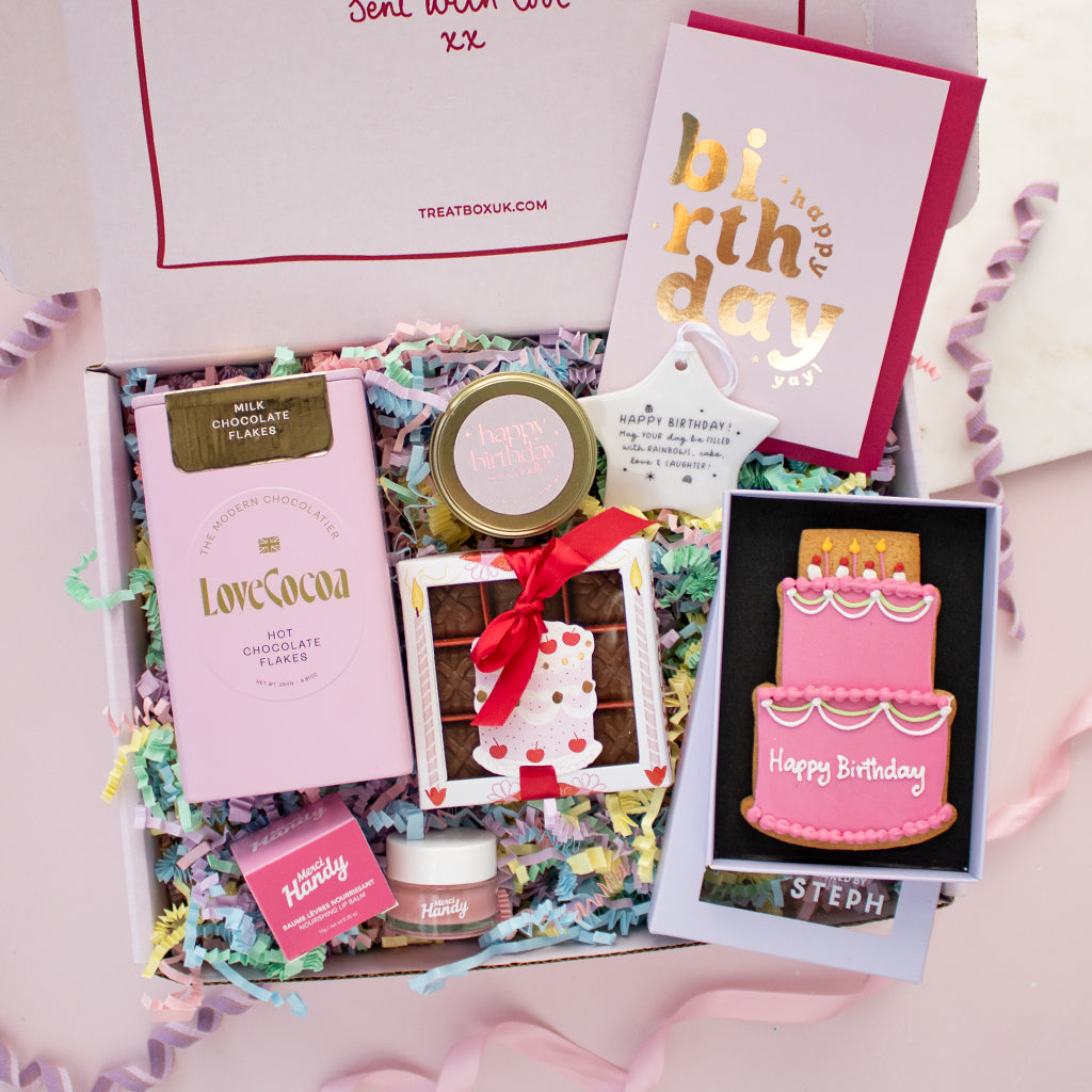 At TreatBox, we’re always creating and evolving! This means our box designs may change from time to time. While our images always reflect our most up-to-date boxes, some variations may occur based on stock availability. All our boxes are designed by TreatBox, fully branded, and colours may vary.