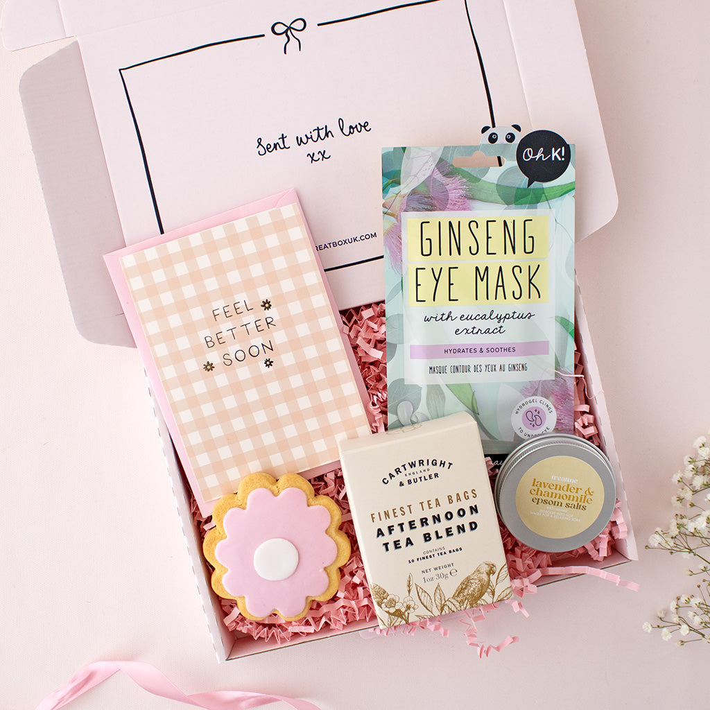 The Get Well Soon TreatBox is a comforting care package filled with soothing treats and uplifting surprises, designed to brighten someone's day and support their recovery.