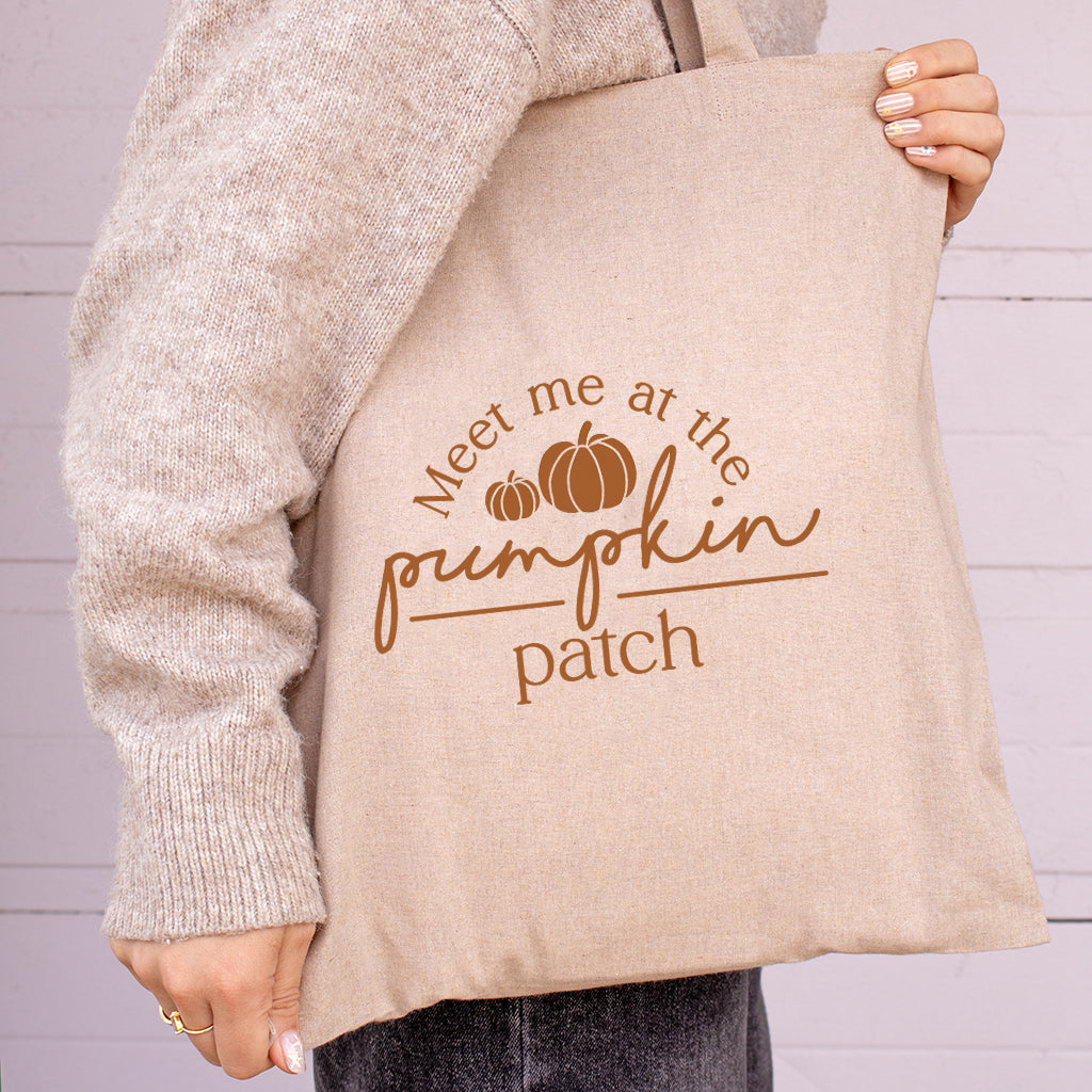 Your new go-to autumn tote! This bag, with its playful pumpkin-patch slogan is perfect for shopping trips, autumn adventures, or trips to the pumpkin patch!