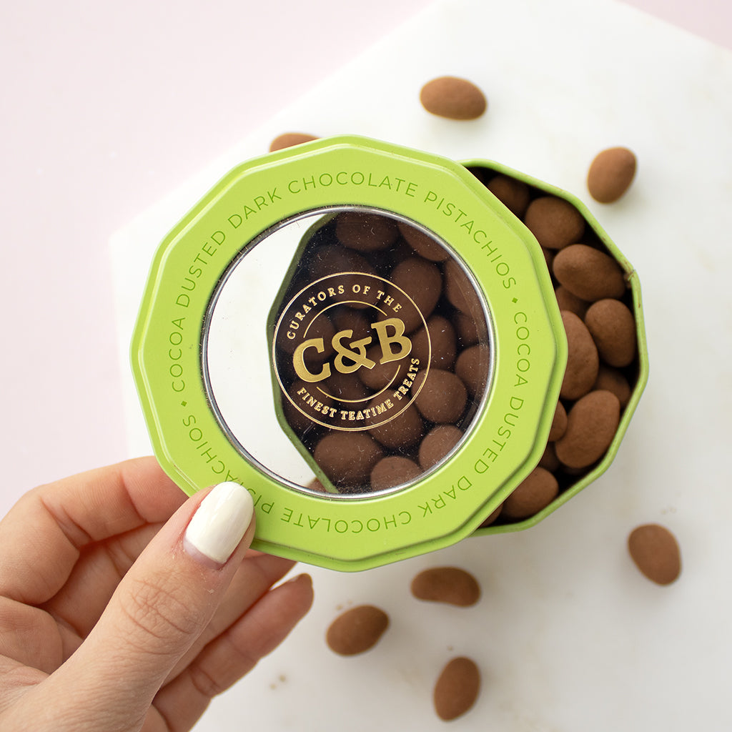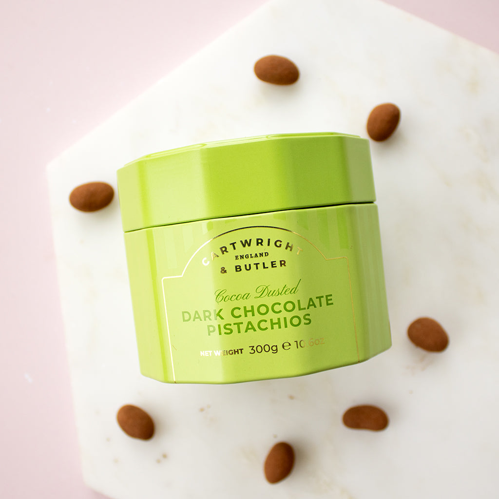 These pistachios offer a mild, nutty yet sweet flavour, wrapped in rich, smooth dark chocolate and finished with a light dusting of cocoa. The naturally sweeter, creamier taste of the pistachios is intensified by the velvety dark chocolate, complemented perfectly by the lingering, slightly bitter finish of the cocoa dusting.
