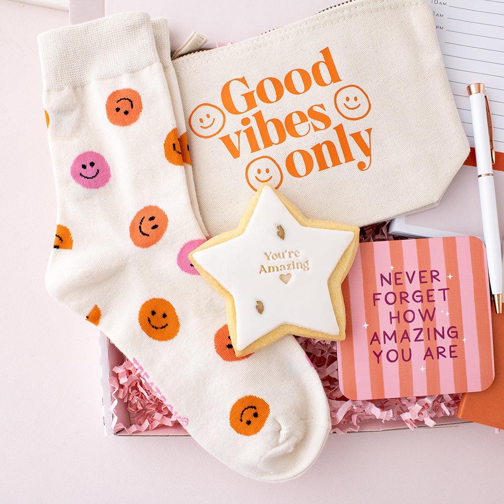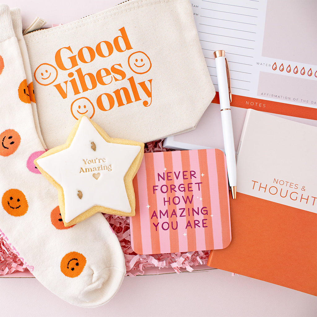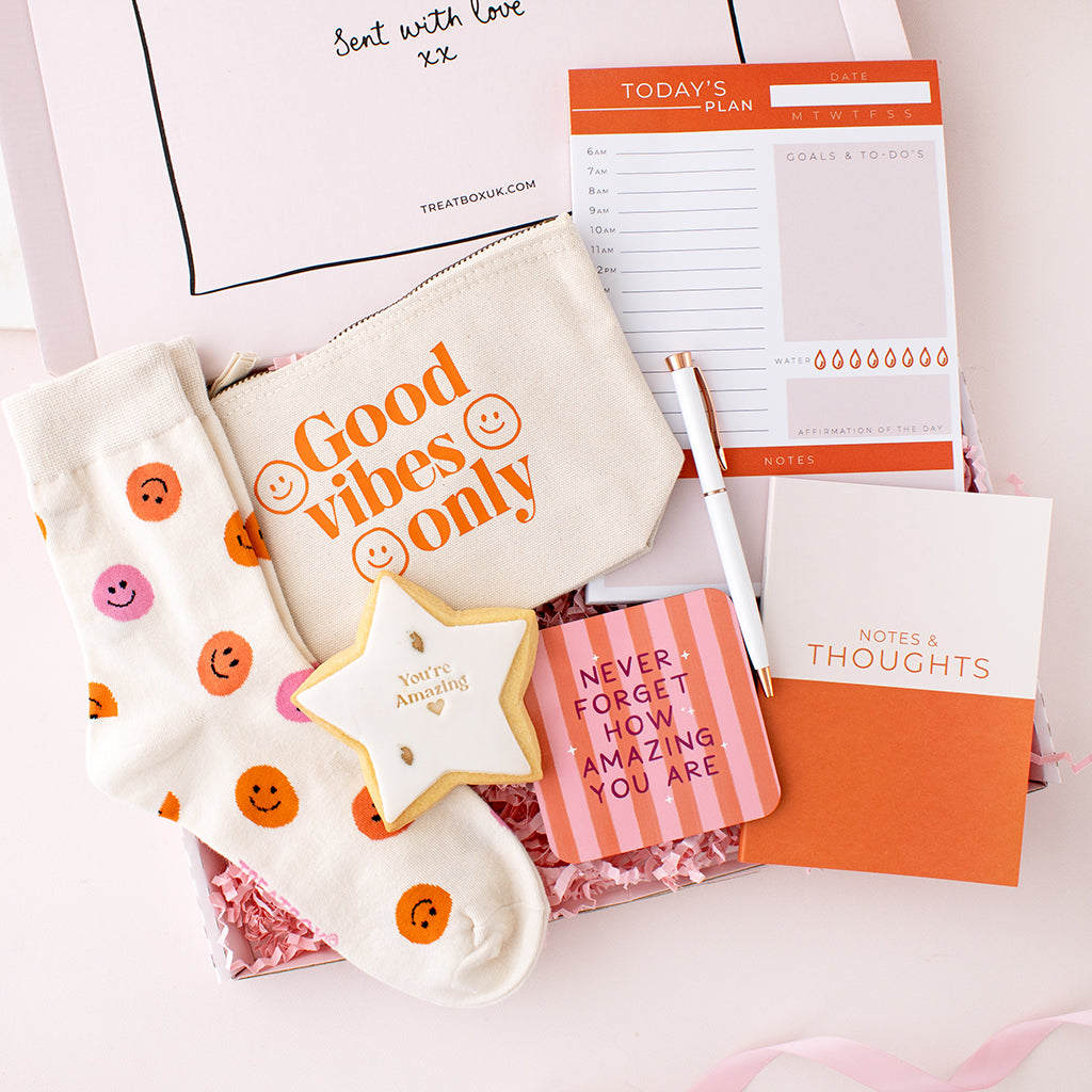 With a mix of cosy comforts, motivational stationery, and sweet little treats, it’s the perfect balance of useful and meaningful, something they can enjoy in the moment and keep using long after.