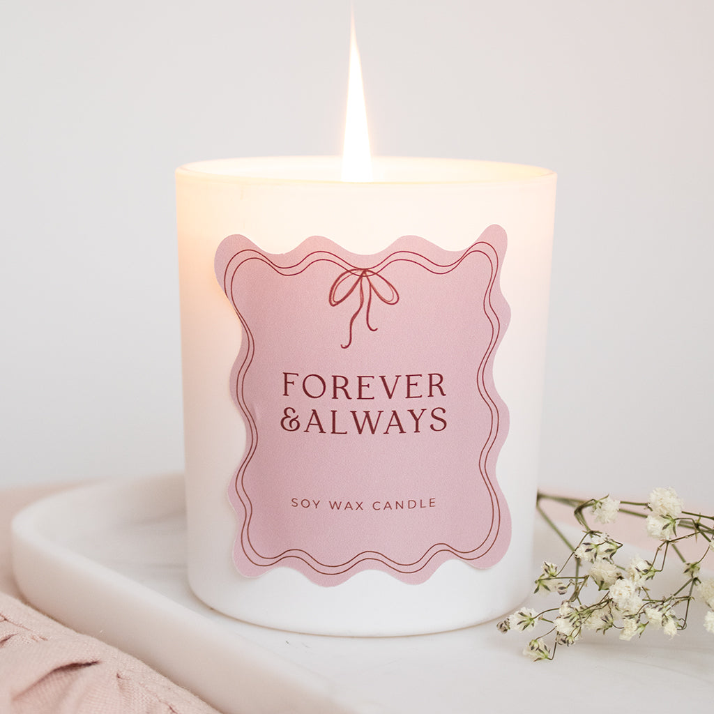 A timeless jar candle featuring the message ‘Forever and Always,’ perfect for creating a warm, romantic atmosphere.