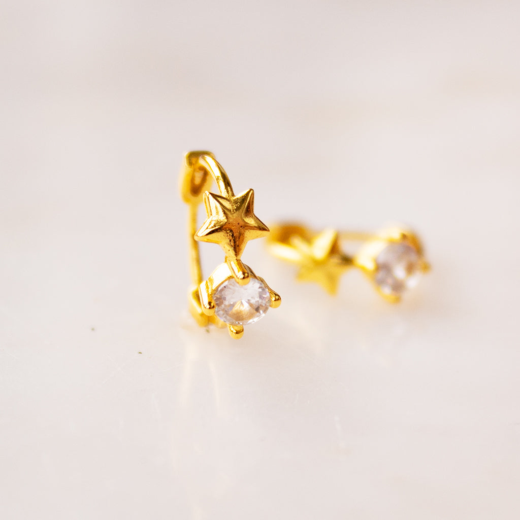 Elevate your everyday style with our star gem huggie earrings, beautifully packaged in a signature pink velvet pouch.