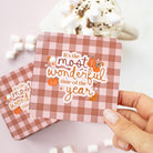 This cosy autumn coaster features a classic gingham pattern and the phrase 'It's the most wonderful time of the year.' A perfect seasonal touch for your autumn tea or coffee breaks.