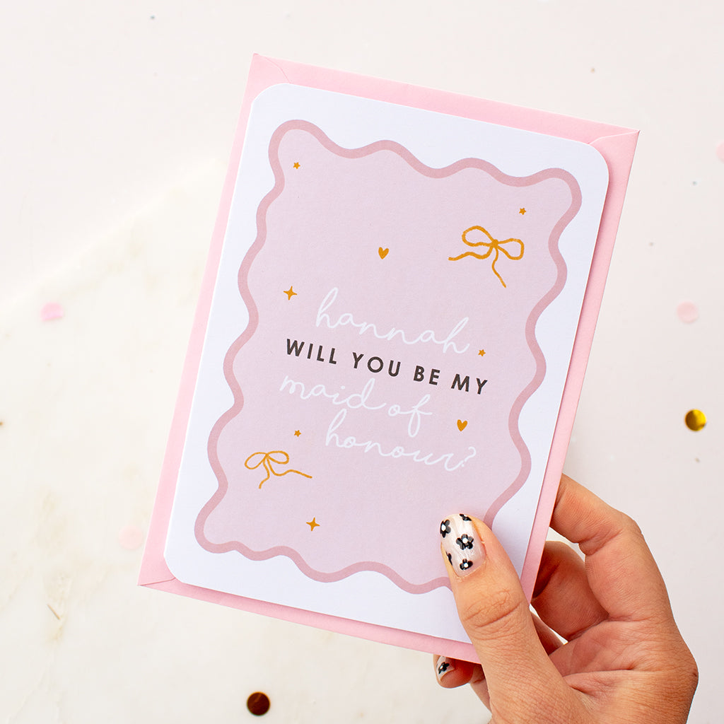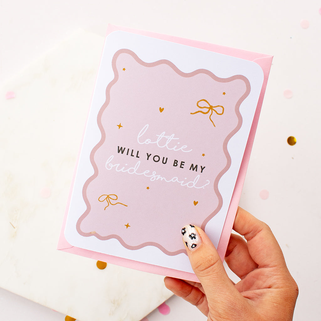 What better way than to pop the question to your bridesmaid with this gorgeous personalised card?