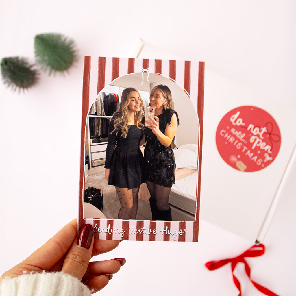 Add a festive hug in the style of a sending hugs photo tag which you can add to your box! We'll handwrite your personal message on the back of the tag, creating a heartfelt touch for your special gift.