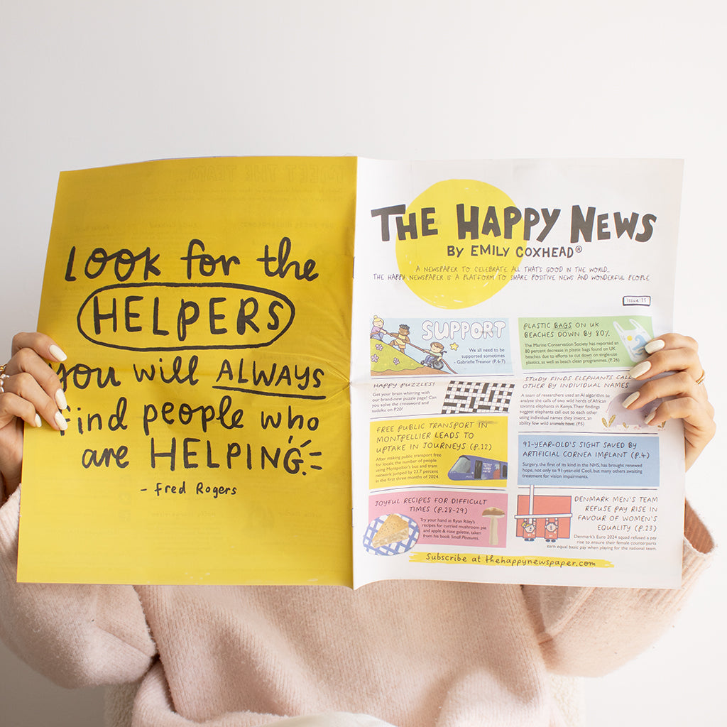 A newspaper by Emily Coxhead to celebrate all that is good in the world full of feel-good stories from around the world and colourful illustrations by Emily Coxhead.