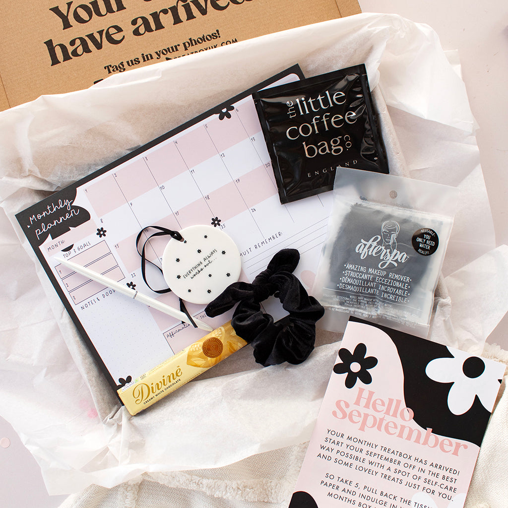 Every box is a hand-wrapped surprise filled with feel-good lifestyle treats; from stationery, home accessories, jewellery, and beauty products to sweet snacks and exclusive items designed by us. Each month brings a brand new secret theme, revealed only when it lands at your door!